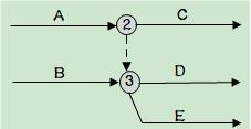 E 작업의 선행 작업 A, B